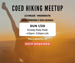 Please pack headlamps if you have them. Sunset snacks/ beverages are highly encouraged! The map below is simply a pin to the park, not the trailhead. Specific meeting location and parking will be sent via group chat on Instagram.