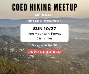 We’ll be hiking Iron Mountain. It’s an iconic hike in San Diego, and can be found on all the “top 10 hikes” lists. Only about 30 min away from the city, this hike has great views and is well worth the effort!